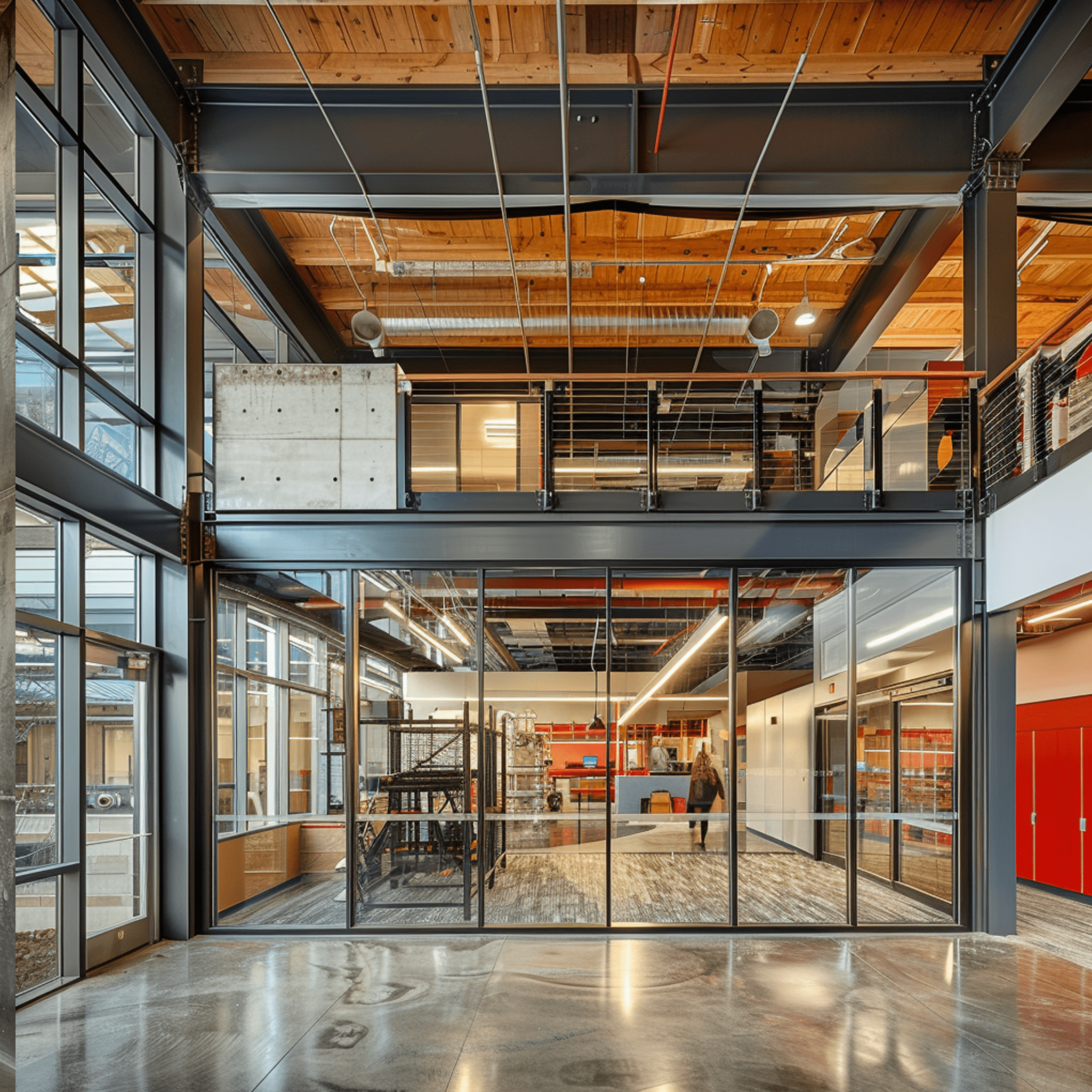 Another area of innovation is based in the material sections within the building. The development of this building began with interactions with the primary stakeholder in the building. We worked with a 3D concrete printing company occupying a portion of the building to utilize their product for the shell of the structure. Additionally, we purposefully utilized a highly sustainable structural system of cross-laminated timbers (CLT) for structural ceiling and roof systems.