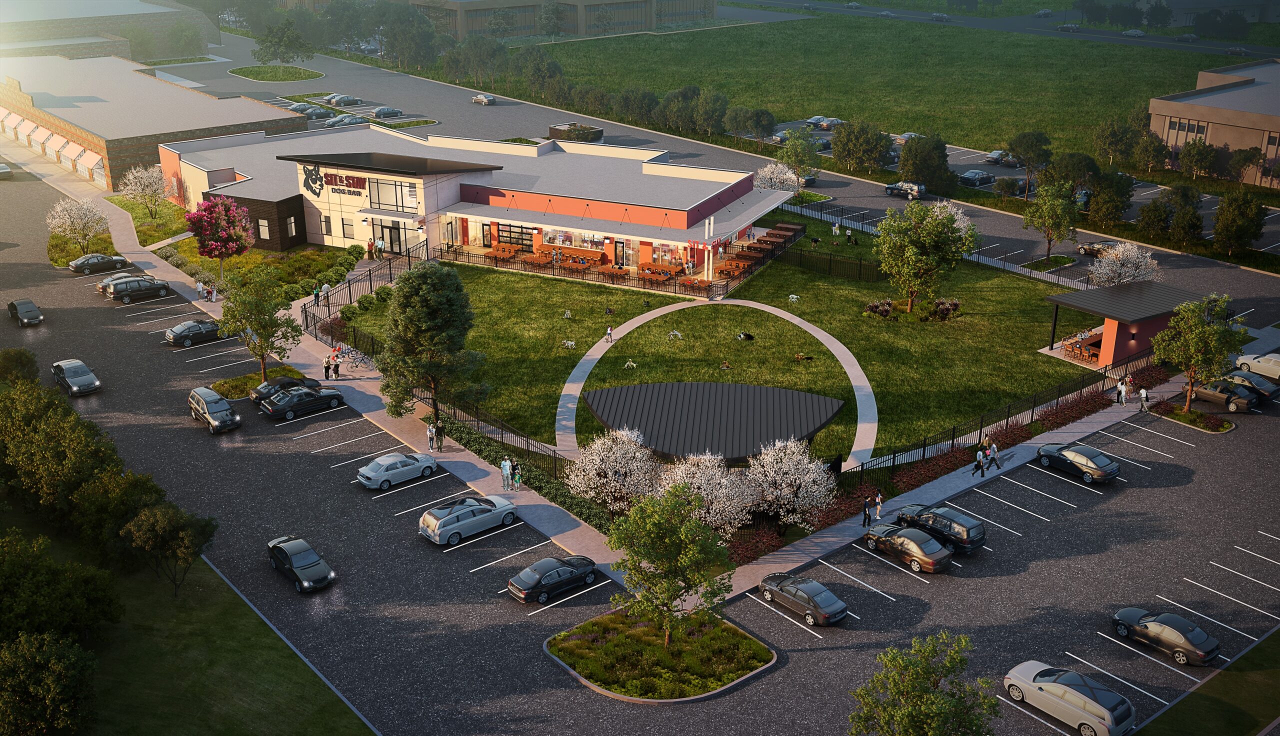 The Sit and Stay Dog Bar is an innovative new concept coming to north Fort Collins, combining a dog park, day kennel, bar, and restaurant in one destination. Proposed by a local resident, the venue will be located on a pad site in Country Club Corners, the shopping center at the corner of Willox Lane and North College Avenue. Plans for the space include a dining area, recreational zones for dogs, doggie daycare and kennel services, a stage for live entertainment, and areas for private events. While dogs won’t be allowed inside the enclosed restaurant, there will be an open-air section where guests can enjoy food and drinks alongside their pets. The dog park will feature irrigated artificial turf to help maintain cleanliness and minimize odors, creating a welcoming environment for both dogs and their humans.