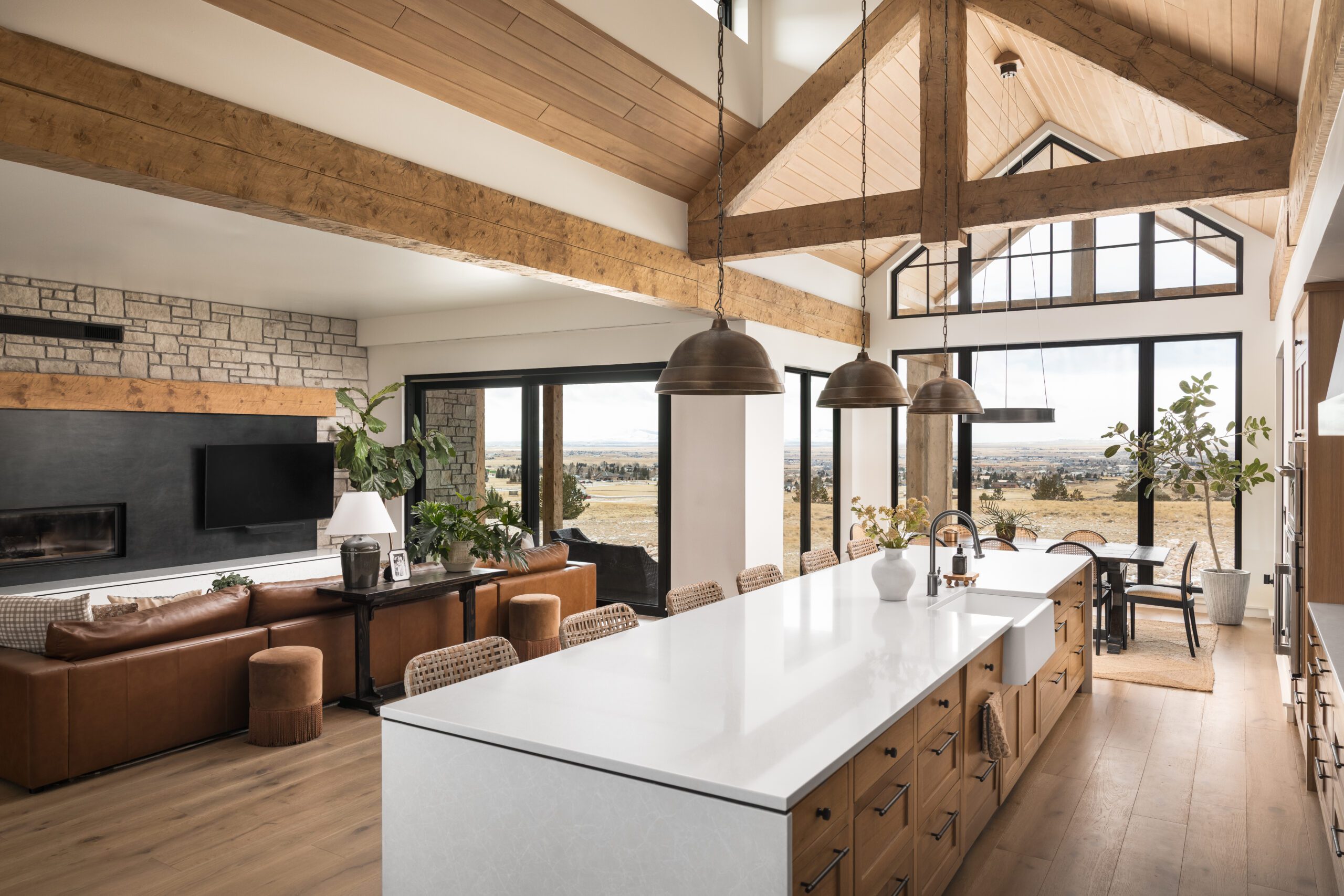 Nestled in the foothills of Wyoming, this 5,000-square-foot retreat offers a serene escape with 3 bedrooms and 3.5 baths. Designed with the family’s lifestyle in mind, the home combines comfort, breathtaking views, and energy efficiency. The colors of the surrounding natural landscape were thoughtfully incorporated into both the exterior and interior, creating a seamless integration with its environment.