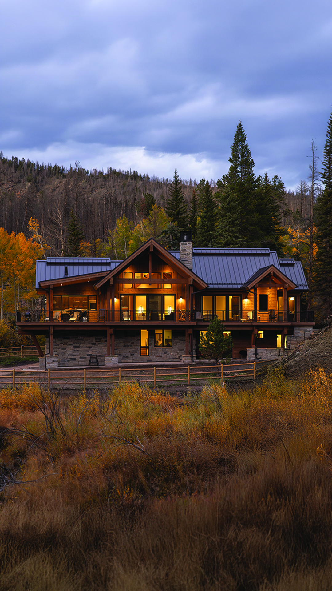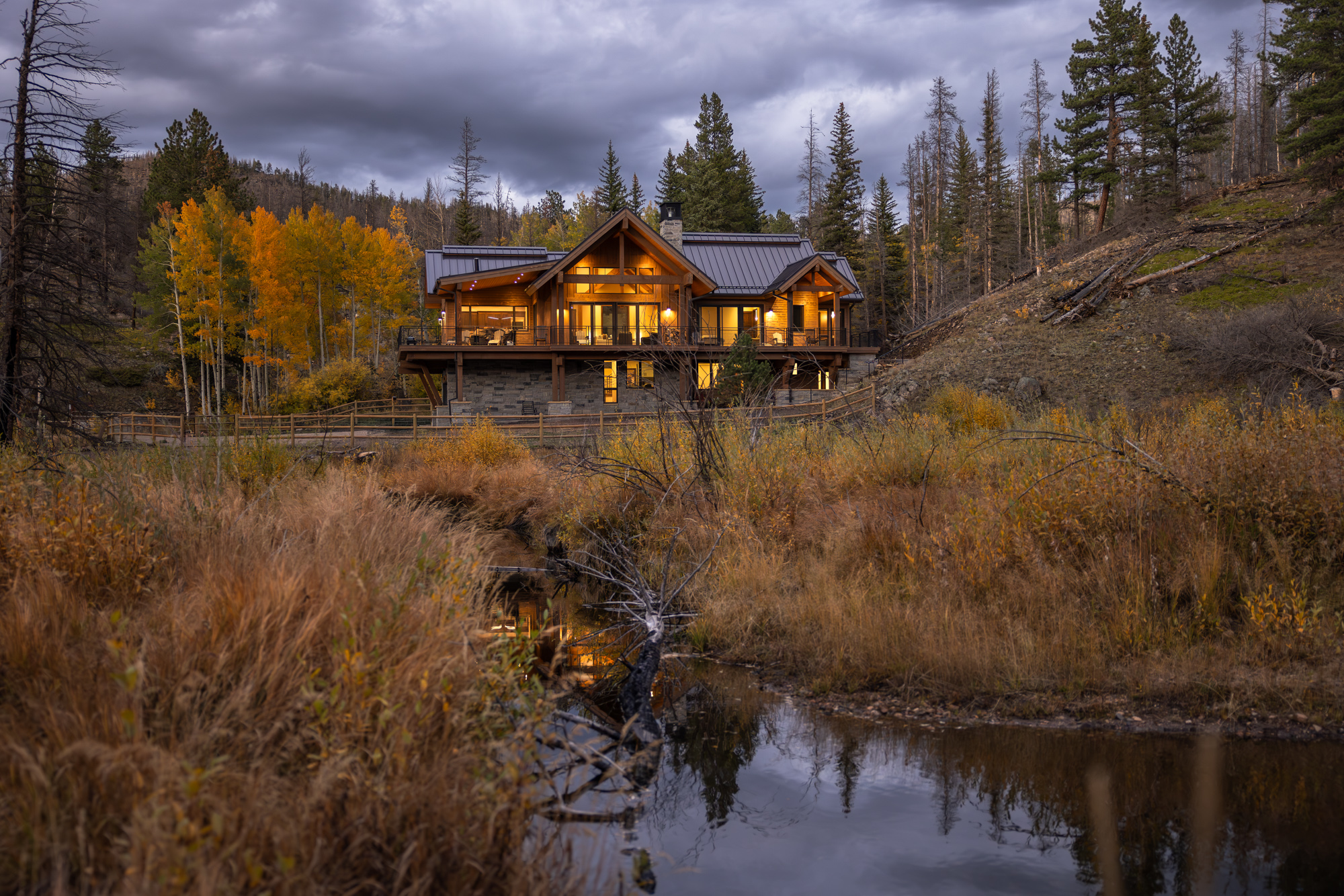 This mountain retreat was designed for weekend getaways or even longer stays. Nestled into the landscape at the base of a mountain, the indoor and outdoor living areas are perched above the garage with a view of the beaver meadow below. Detailed surveying and hydrology testing of the site was done to ensure the meadow, which is a protected wetland area, would not be adversely affected by the construction of the new home.
